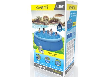 L'assemblaggio della piscina gonfiabile rotonda autoportante Avenli 17796EU si completa in meno di 10 minuti! La piscina è realizzata interamente in PVC laminato multistrato molto resistente e viene fornita con una pompa filtro da 1136lt/h 29P414 con cartuccia filtro inclusa 290587 oppure 29P481. Misura 420x84cm e la portata massima d'acqua che può sopportare è di 7820lt.